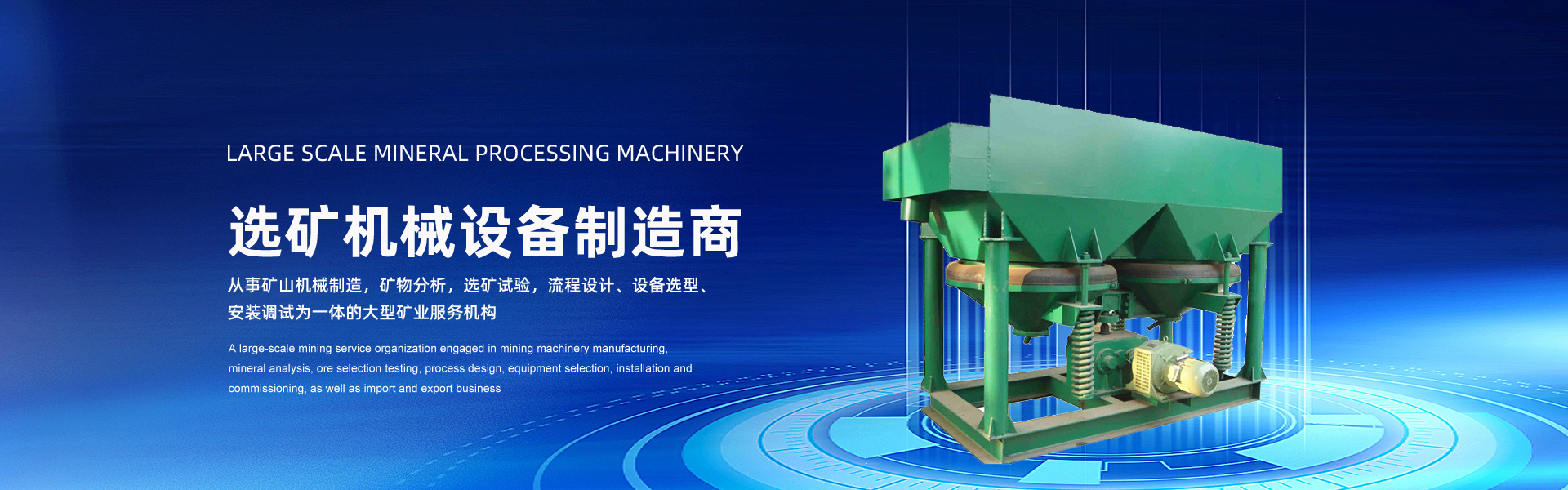 矿山机械制造,矿物分析,选矿试验,流程设计、设备选型、安装调试及进出口业务为一体的大型矿业服务机构